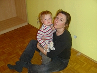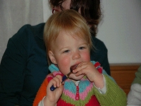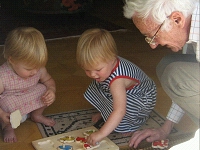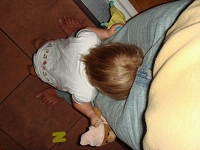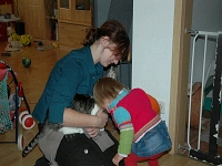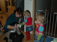 Bei Omama und Opapa mit Artus. Artus muß zerst Verena's Füße kontrollieren - paßt, sie darf hier sitzen!