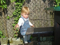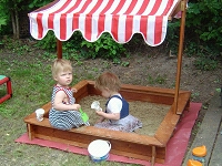 Hurra, eine Sandkiste! Auch hier: haben eine Sandkiste gekauft und den Sand vergessen. Gott sei Dank gibt es liebe Menschn mit Kleinkindern, die uns ein paar Sandsäcke zur Verfügung gestellt haben - sonst hätten wir Sonntags in den Baumarkt einbrechen müssen...