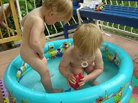 Ein Planschbecken ist nur dann lustig, wenn man sich nicht niedersetzen muß - man könnte ja naß werden!