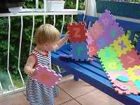 Wieder einmal bei Omama und Opapa. Nachdem Opapa mit den Zwerglein das Puzzle fertig gepuzzelt hat, sind Muttis Schuhe viel interessanter