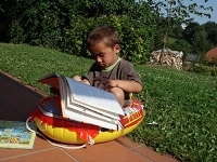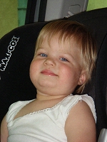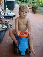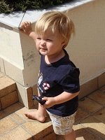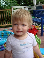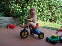 Wieder einmal bei Omama und Opapa. Was fällt hier auf? Der erste Haarschnitt! Das ausgewachsene "Bischofskränzchen" hat darunter leiden müssen.