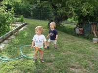 Wieder einmal Kinderarbeit bei den Großeltern. Aber Julia macht das schon recht gut!