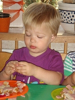Selber essen kann ganz schön anstrengend sein, wenn man die Speisen erst bis ins Kleinste prüfen muß, bevor sie für "tauglich" befunden werden